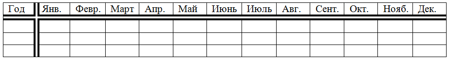 Таблица среднемесячных температур за год: